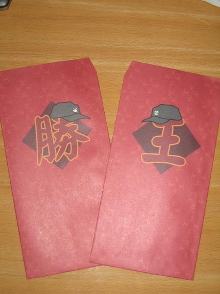 再來看看紅包袋吧,一共有兩個,分別寫著"王"、"勝"